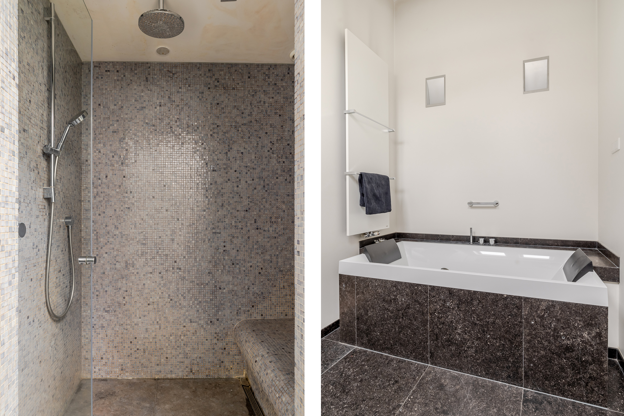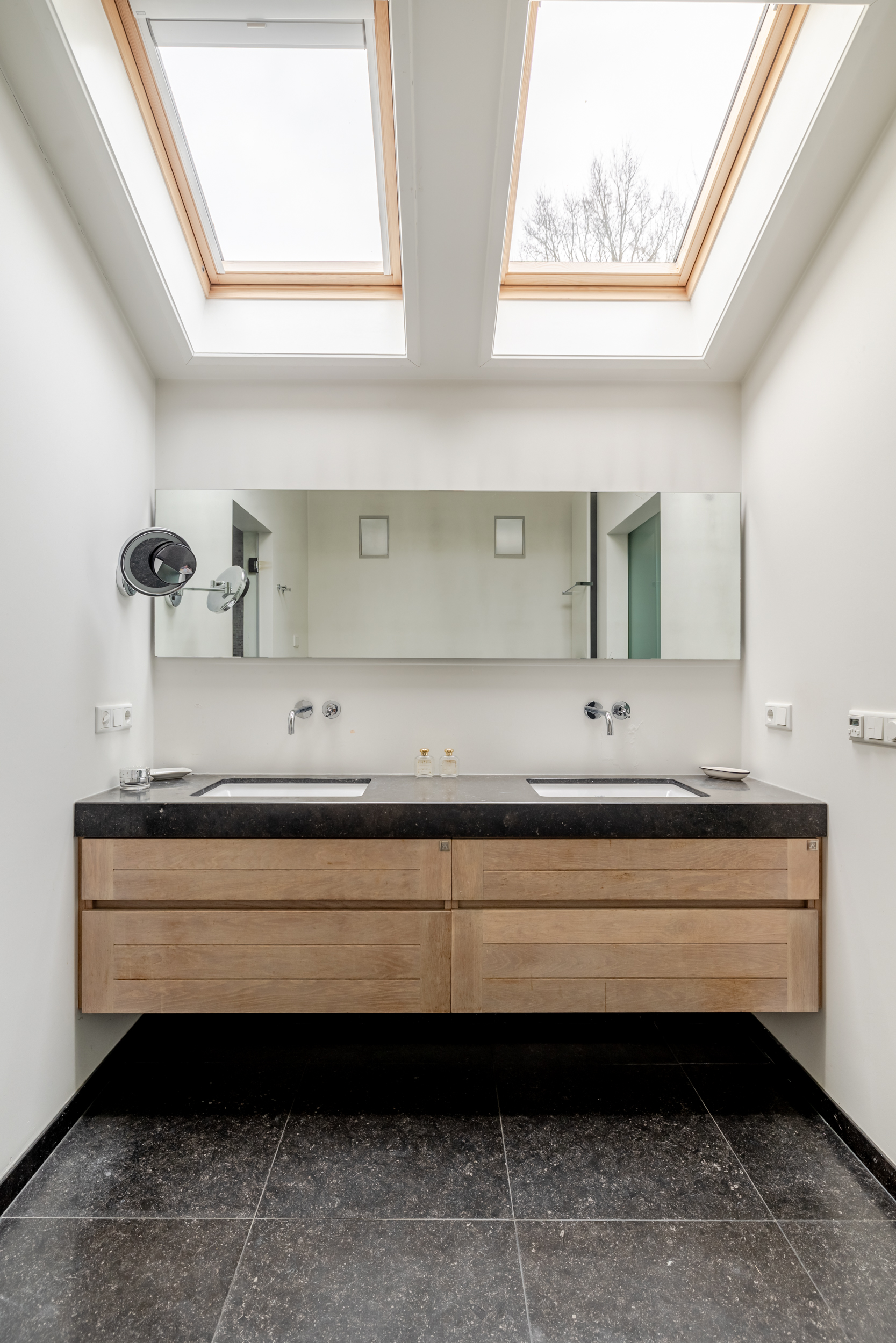别墅底层设有卧室和豪华卫浴套间,营造出面向未来的舒适生活。厨房配备Lacanche燃气灶、石材台面及充裕橱柜,配合实用的杂物间和宽敞储物空间,提升整体功能性。楼上设有三间卧室和第二间浴室,均配以法式小阳台和斜顶隐藏储物空间等细节。
