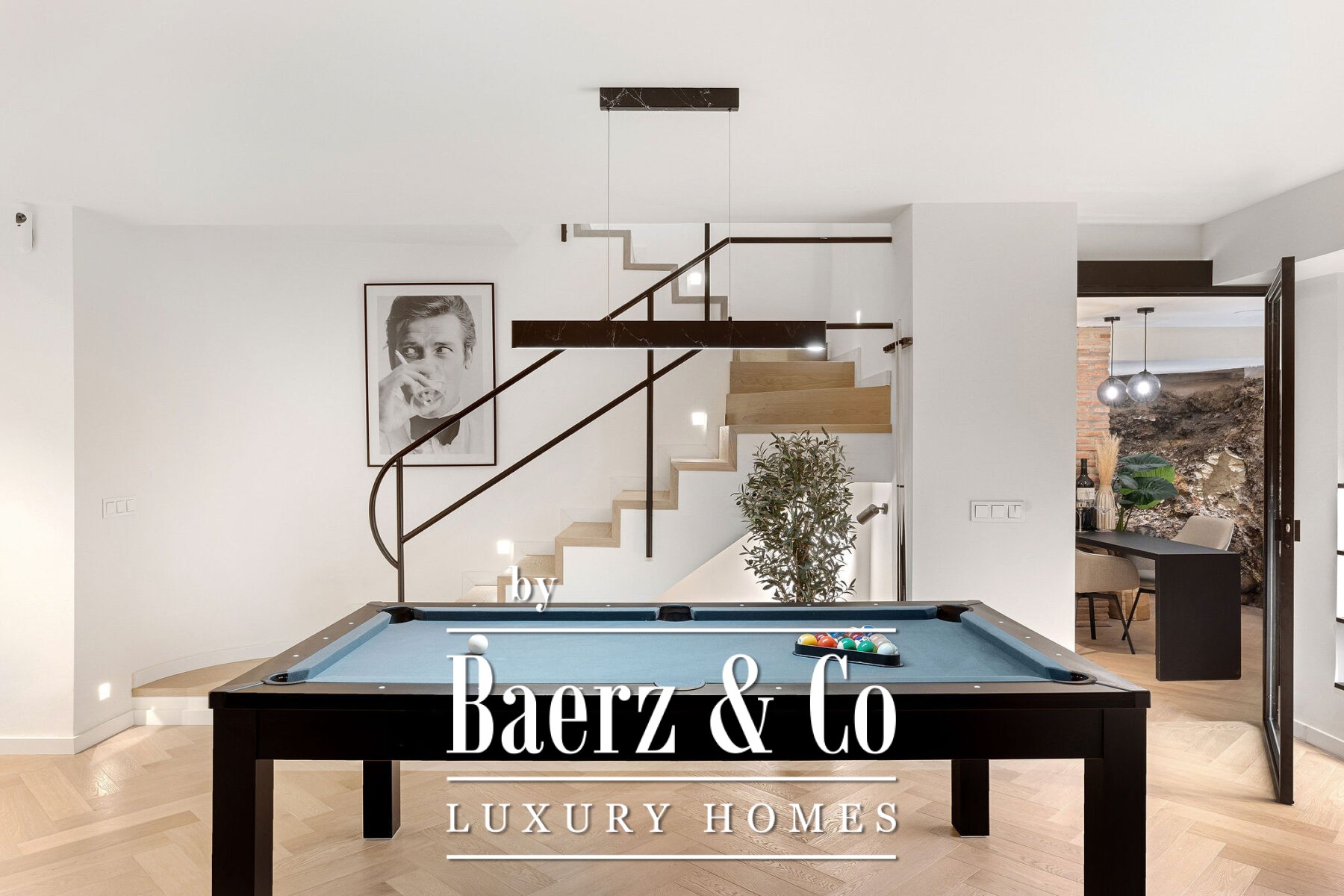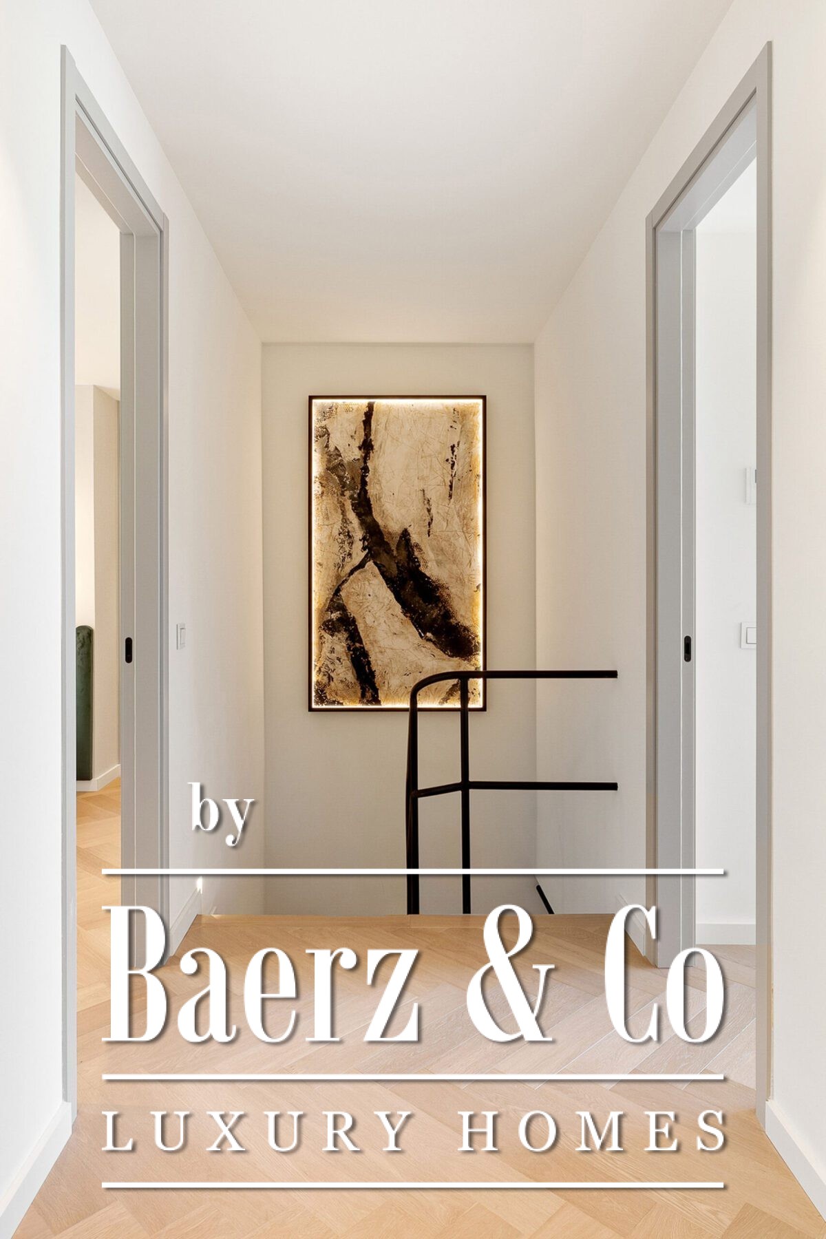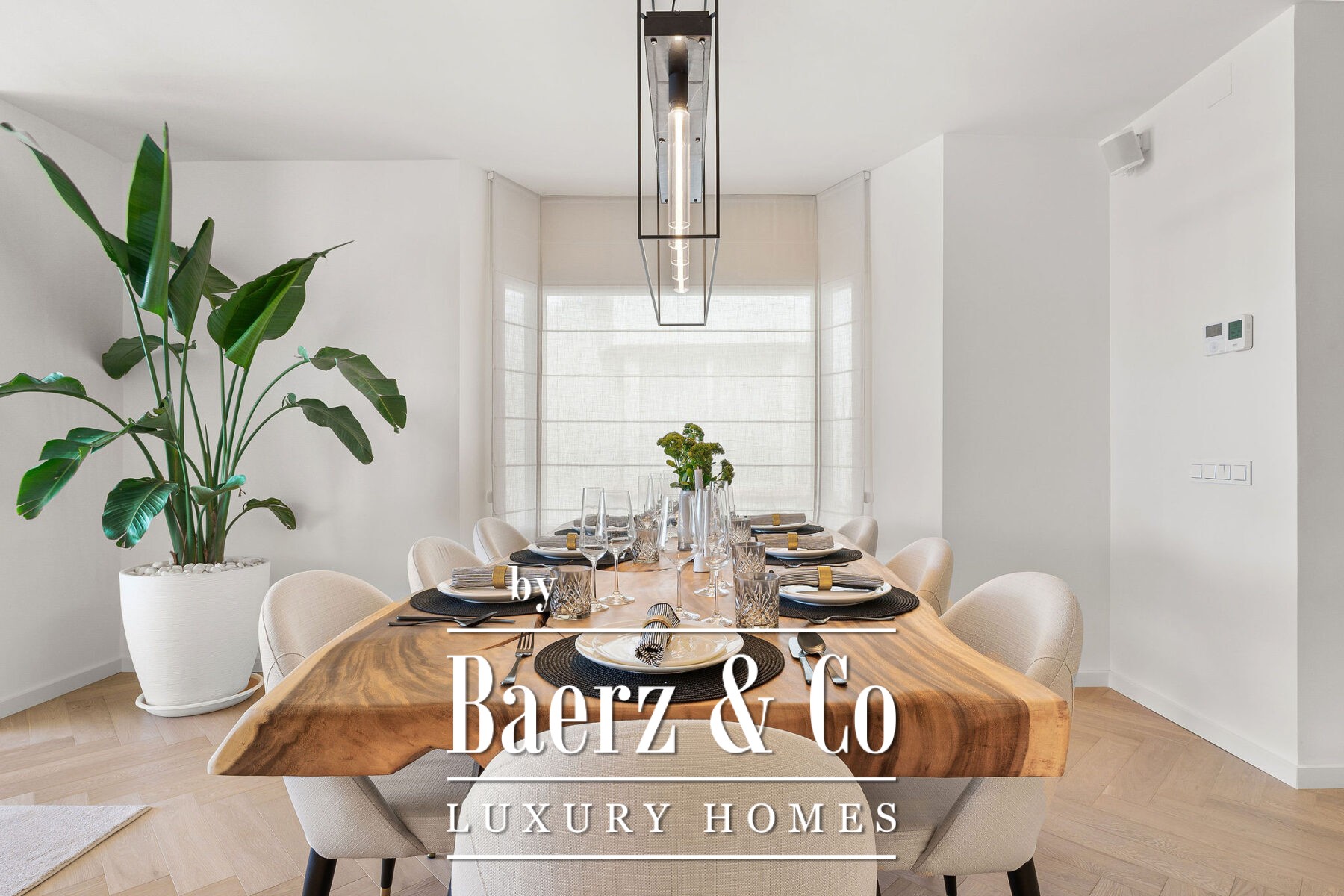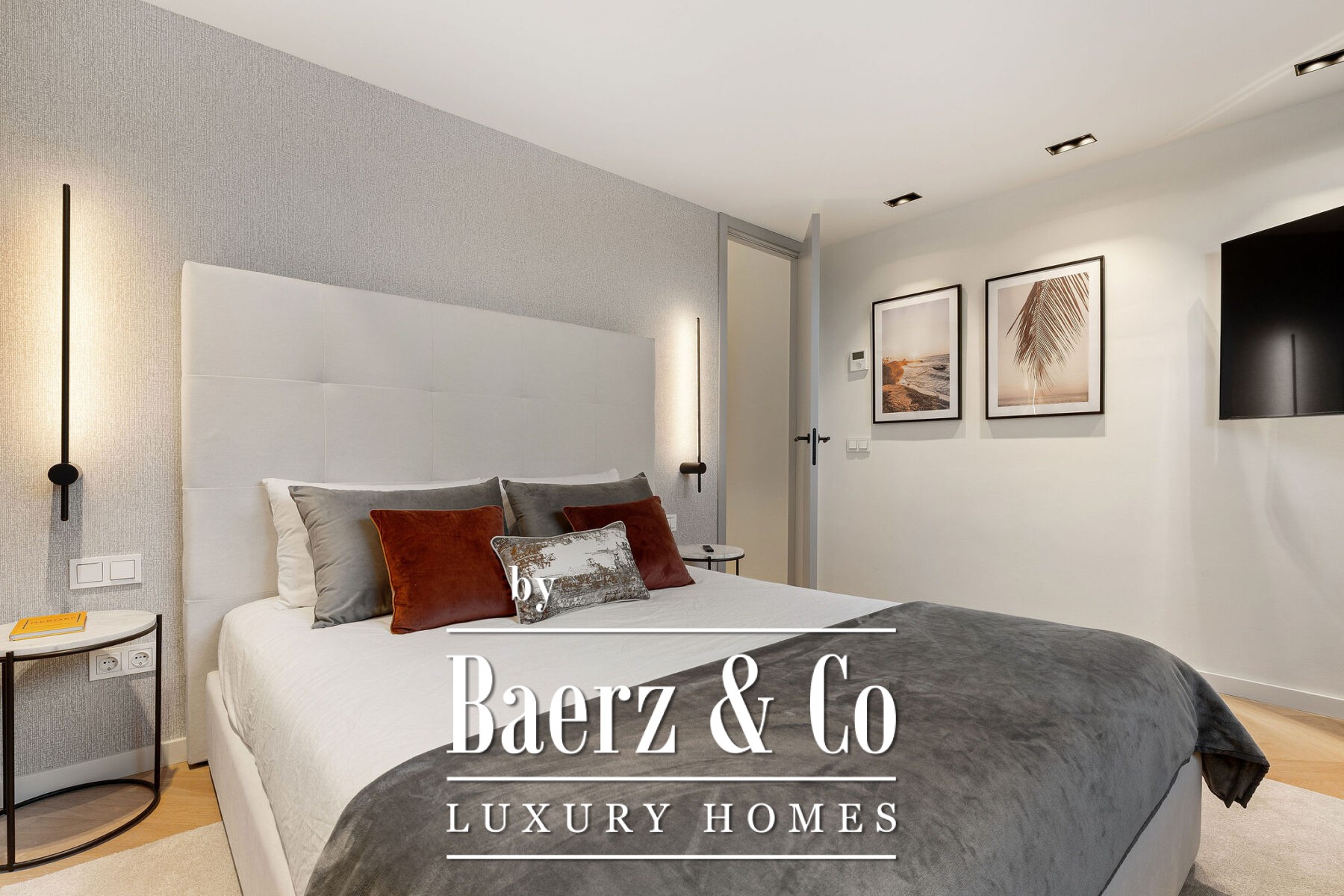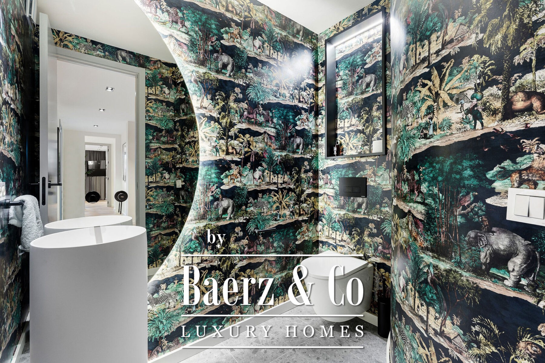 一层空间设计通透,阳光自然洒满开放式客厅、餐区及配备顶级 Gaggenau 电器的厨房,每个细节均选用珍贵木材与大理石饰面。人字拼地板与自然色调,营造温暖而内敛的格调。客厅延伸至私家庭院,适合户外聚餐及静谧休憩。主卧套房富丽堂皇,拥有宽敞衣帽间、独立浴缸(面朝露台)及专属卫浴。楼层另设一间卧室,可灵活满足家庭或客人的住宿需求。
