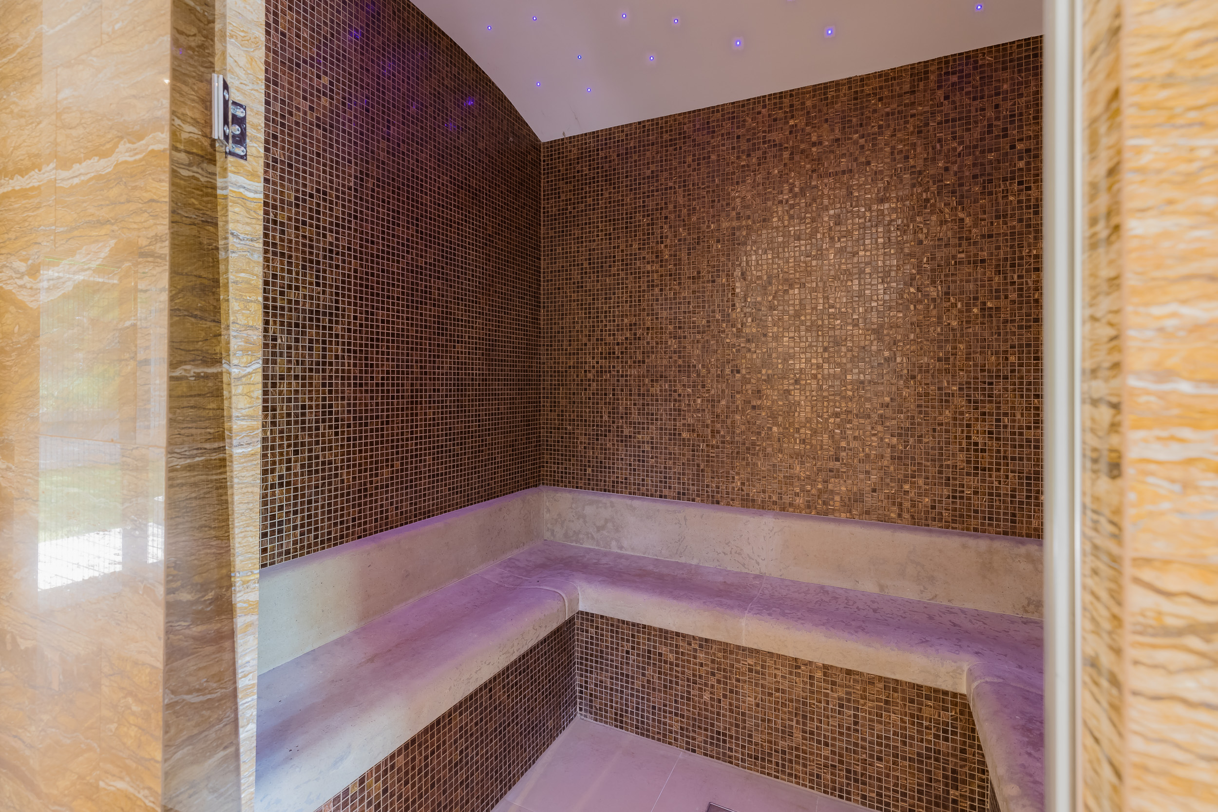底层铺设核桃木地板,专属玄关引入浅小绿乡村厨房,配有六头AGA灶台和四台烤箱。起居室内设有壁炉及法式落地门,直通花园。私密主人套房独立成翼,配备大理石浴室、步入式淋浴间、蒸汽房及定制皮革洗手盆。从这里可走出14平方米的宽大阳台,通过加热器和氛围照明,自然实现室内外的无缝过渡。