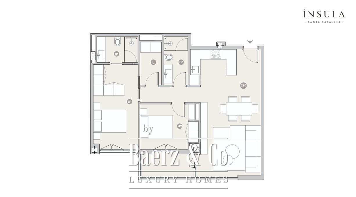 Santa Catalina 的 Palma 公寓于市区最受欢迎的街区之一,营造出低调奢雅的居住氛围。该全新住宅于 2025 年竣工,静谧自信地融合高端用材与精细建筑工艺。面积 111 平方米,布局合理,设有两间优雅卧室与两间浴室,兼顾私密性与舒适度。起居空间与厨房及休闲区连通,流畅延伸至露台,沐浴在界定邻里节奏的地中海阳光之中。