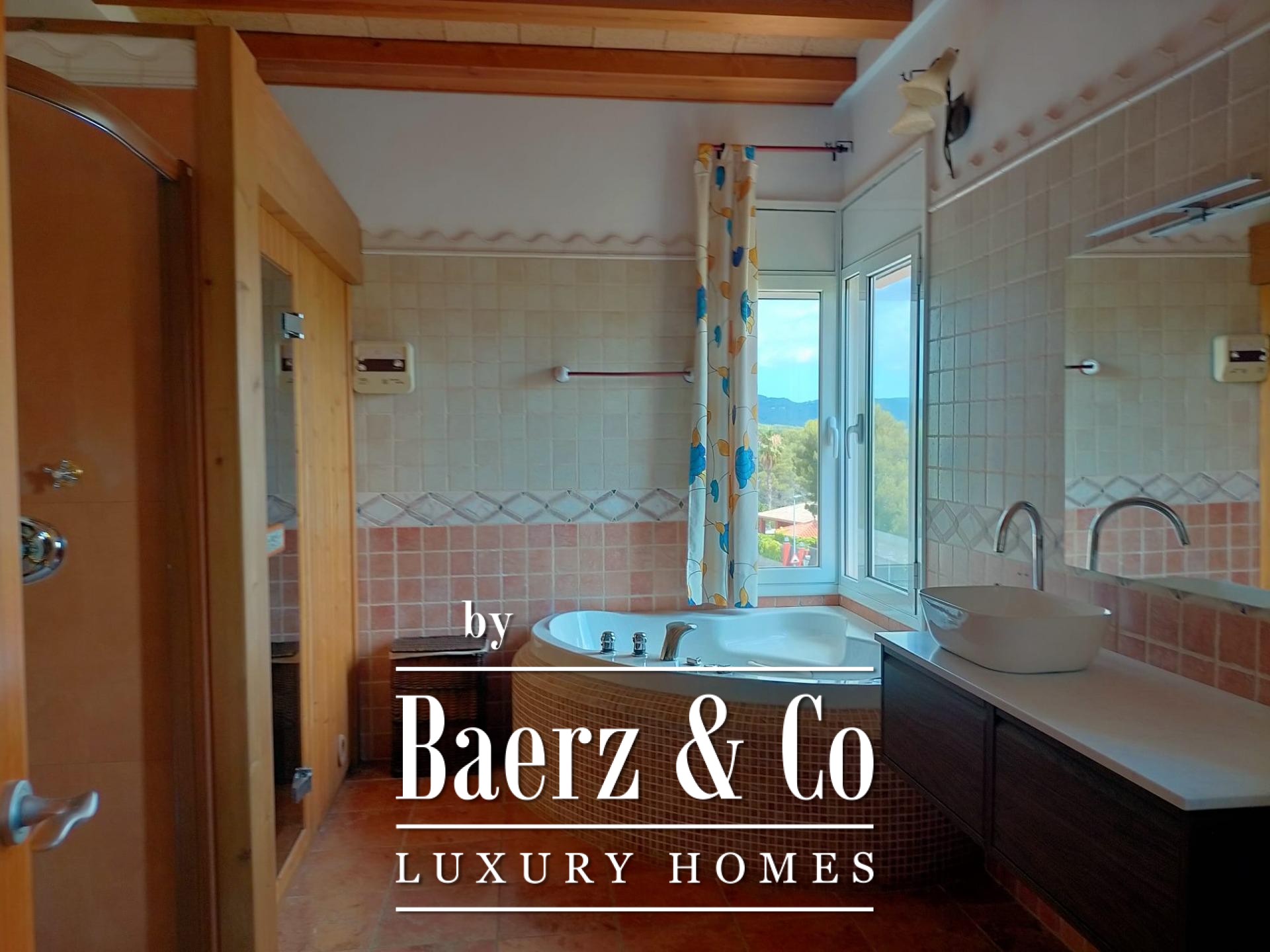 Sant Pere de Ribes别墅静谧坐落于尊贵的Els Cards住宅区,位于锡切斯与Sant Pere de Ribes之间,私密性与全景视野贯穿每一生活时刻。这栋五卧室三卫浴别墅将传统西班牙建筑风格与现代精致优雅完美融合。新近翻新的内部空间保留了诸如拱门和自然质感等原始细节,同时融入流畅的现代线条和温暖色调。开放式主层布局将厨房、餐厅和起居空间无缝贯通,两侧窗户带来充足阳光。标志性壁炉是客厅的核心,全年都是温馨聚会的理想场所。