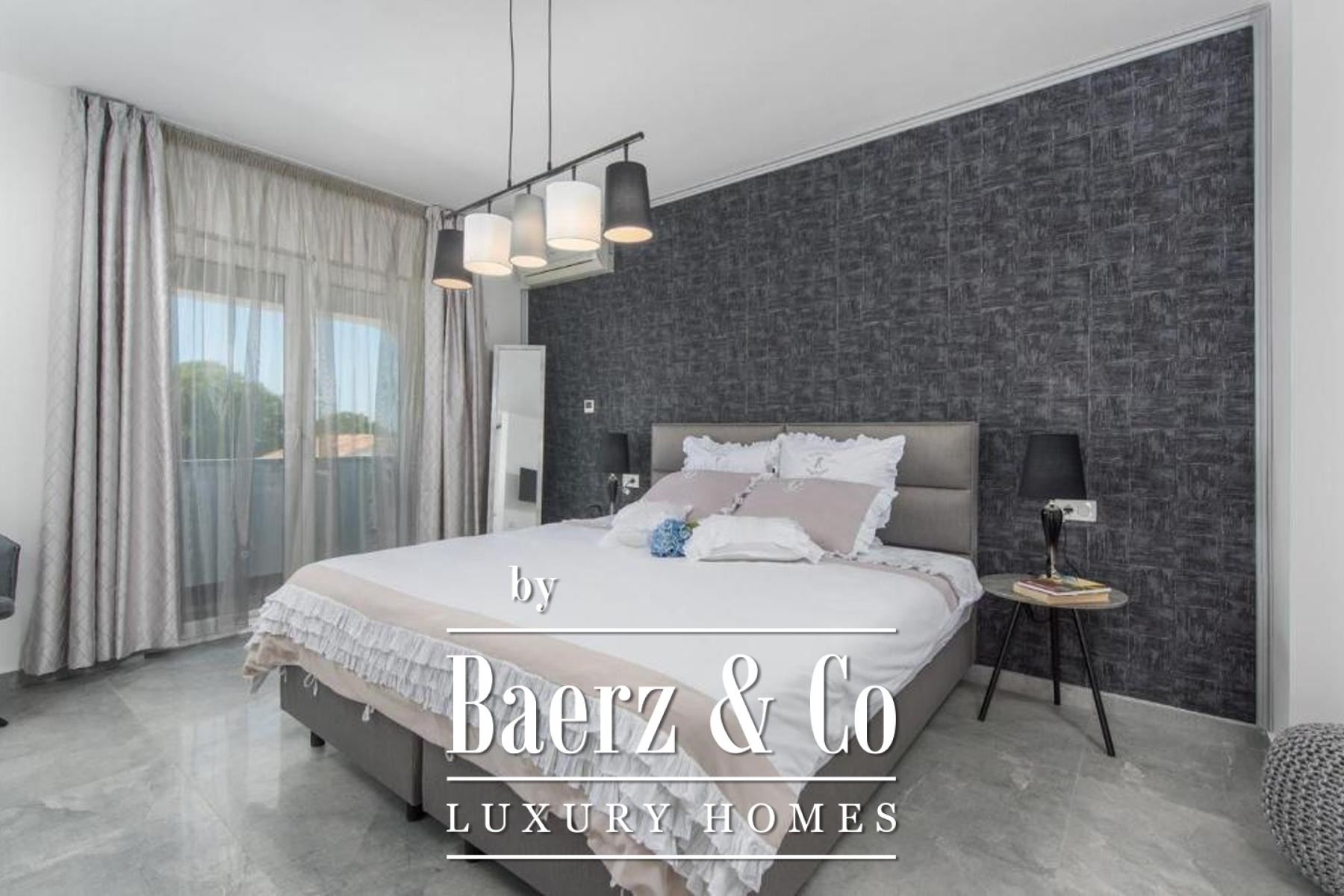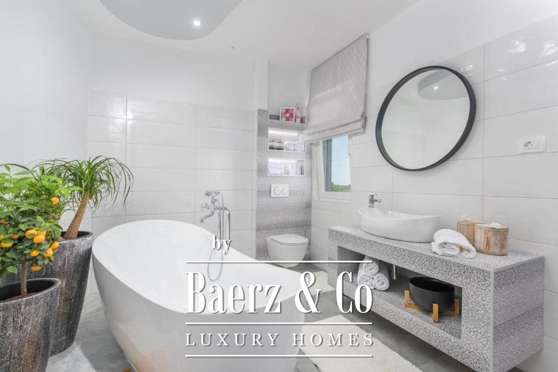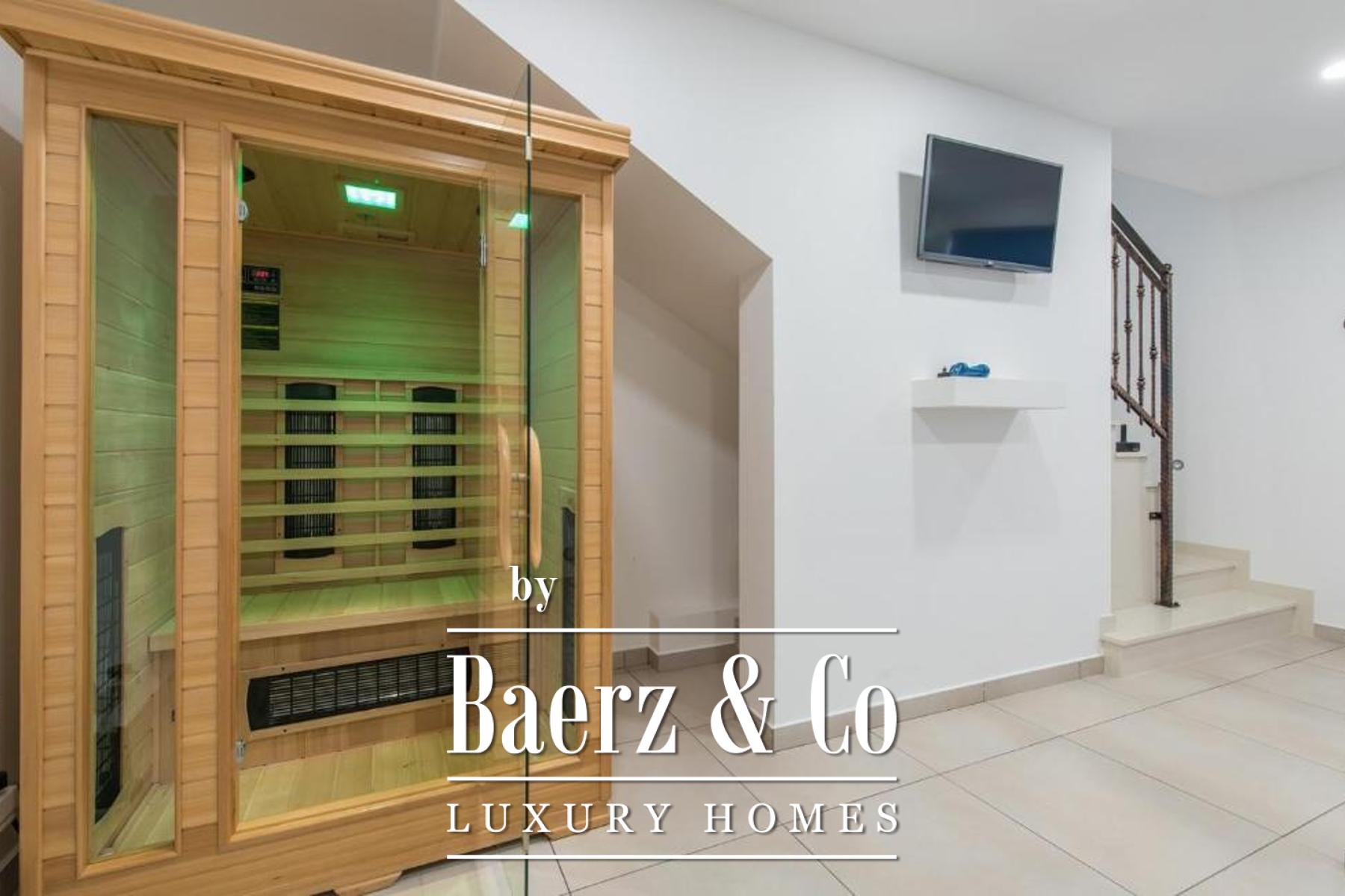 底层将宽敞室内与户外区域巧妙融合,包括30平方米游泳池、按摩浴池、两处有顶露台,以及与花园无缝连接的客厅。厨房与餐区延伸至专属露台,无论日晒还是荫蔽,皆适合聚会欢聚。地下室配备健身房和桑拿房,为健康与放松提供理想空间。二楼三间卧室和三间浴室均可通往露台,尽享周围自然与远处海景。阁楼新增两间卧室及两间浴室,为宾客或家人带来更多私密空间;夹层还设有带套间浴室的卧室,增添舒适体验。